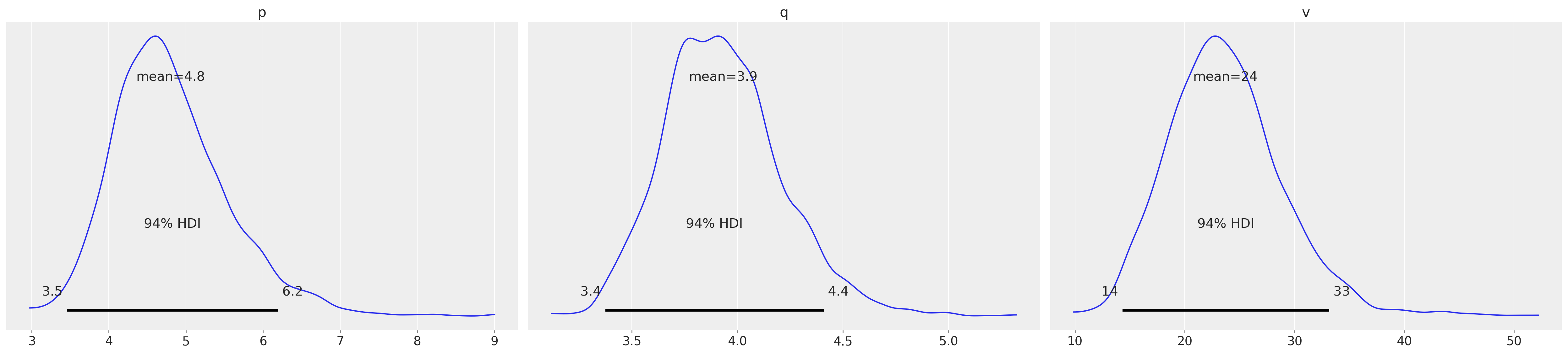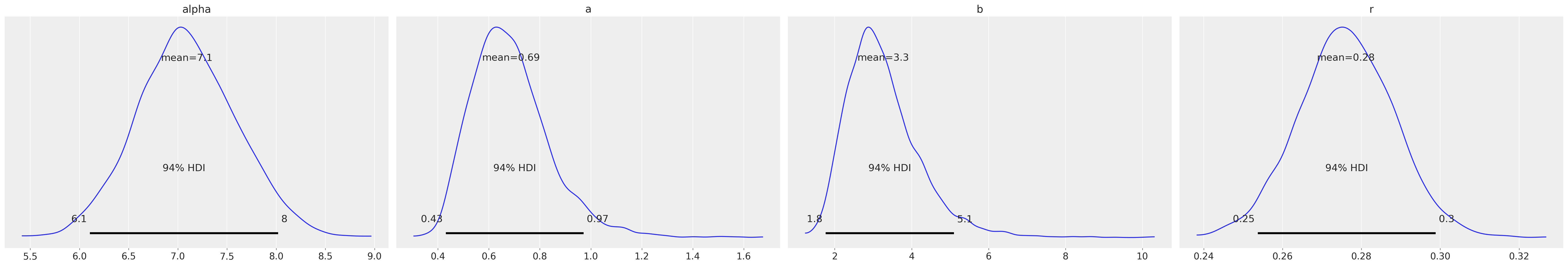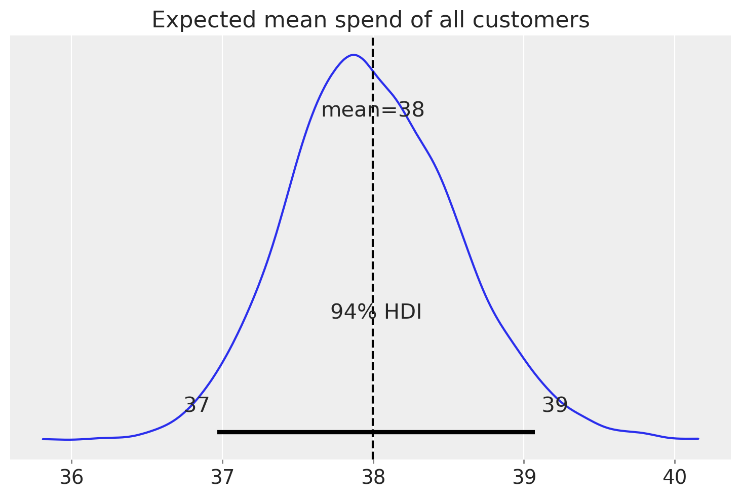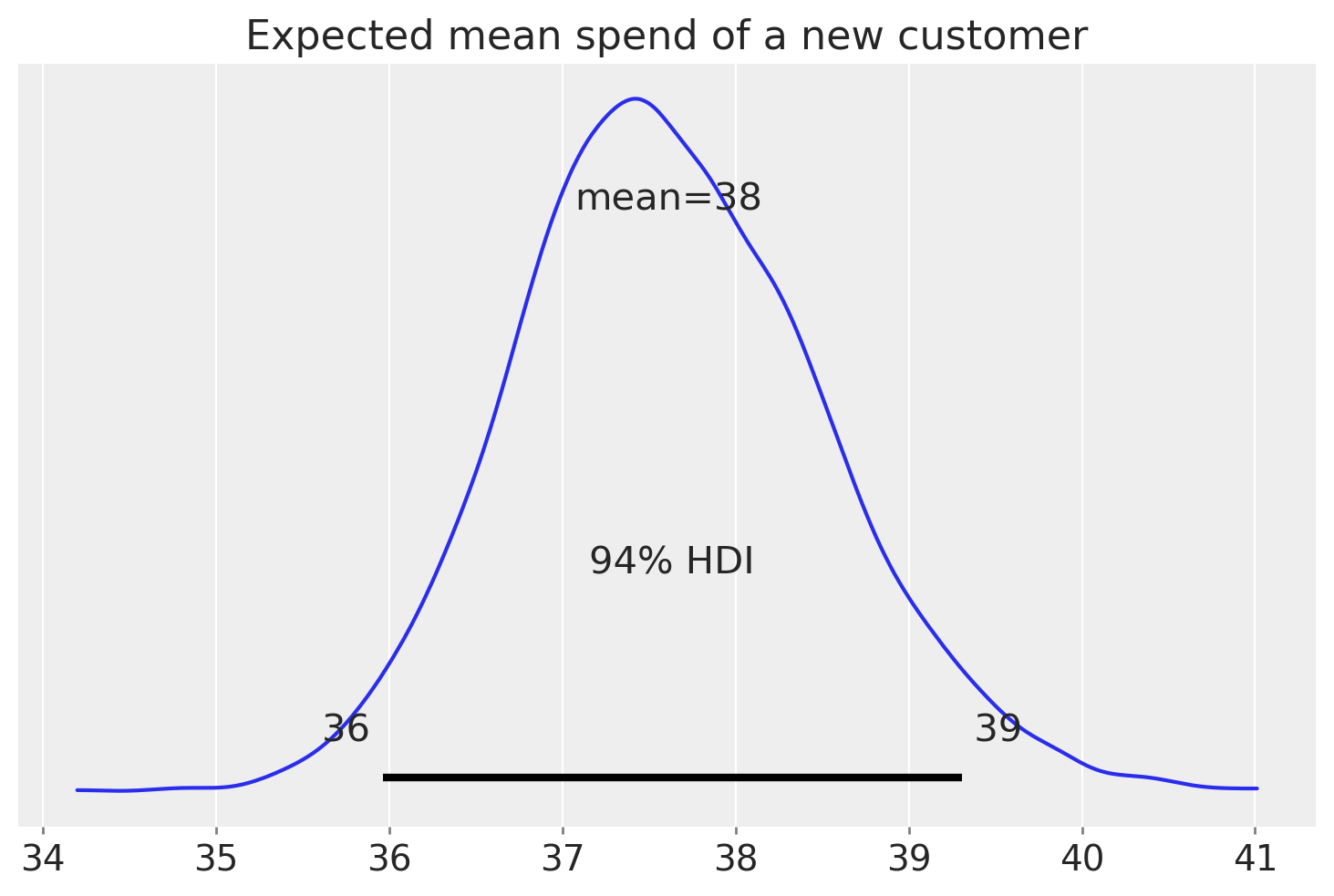 az.plot_posterior(expected_spend.mean("customer_id"))